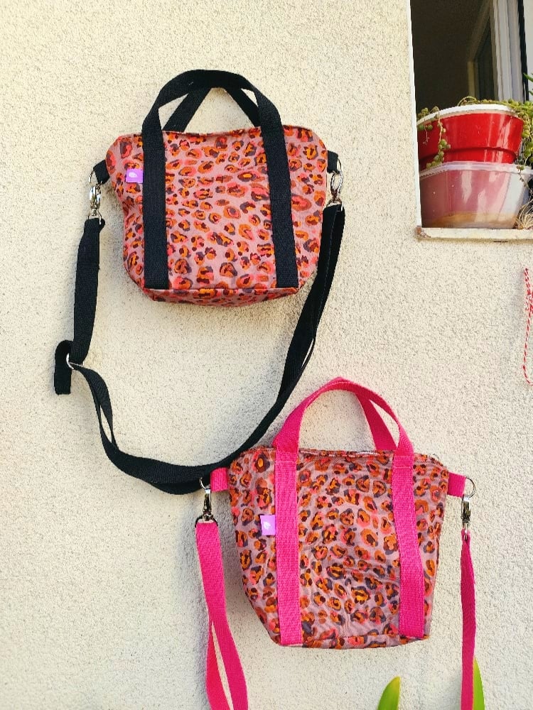 Asas de algodón: asa corta para llevar de la mano y asa larga de quita y pon para llevar de bandolera o al hombro.