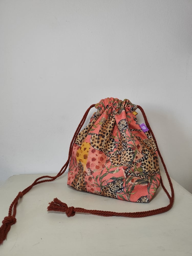 Puedes llevarlo colgado del hombro o cruzado. Incluso puedes anudar las cuerdas (vienen bastante larguitas) y usarlo de bolso de mano.