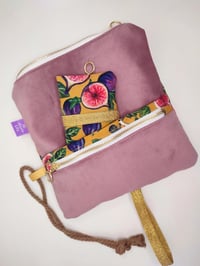 Loneta reciclada. Parte trasera en loneta, cremalleras metálicas y enganche para llaves en su interior.