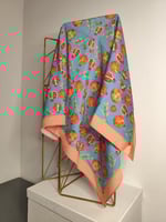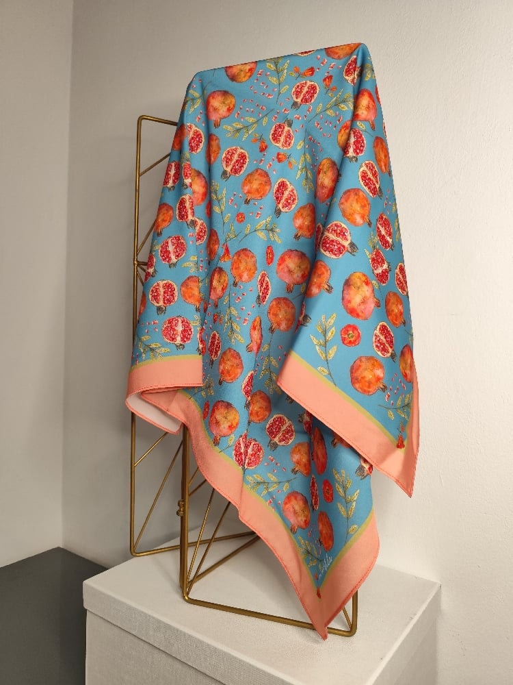PAÑUELO 70 x 70 SEMISEDA GRANADAS CELESTE