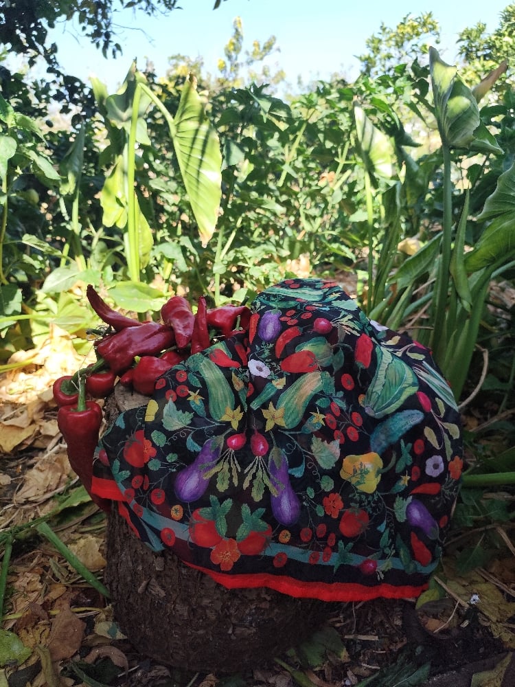 Diseño propio del estampado HUERTA: realizado a partir de ilustraciones en acuarela. u